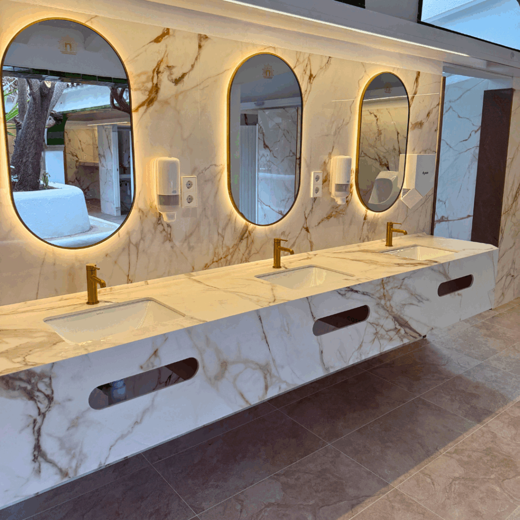 Nos complace presentar la renovación de los baños de la Zona K, un proyecto cuidadosamente diseñado para ofrecer a nuestros huéspedes un entorno más moderno, eficiente y confortable.